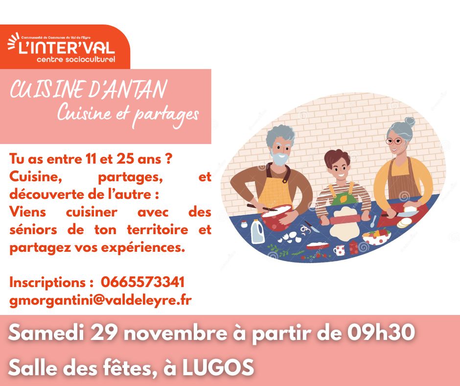 ATELIER CUISINE D’ANTAN — SPÉCIAL JEUNES 11–25 ANS À LA SALLE DES FÊTES DE LUGOS…