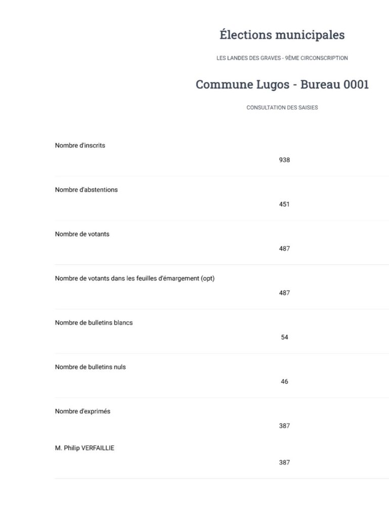 RÉSULTATS ÉLECTIONS MUNICIPALES LUGOS